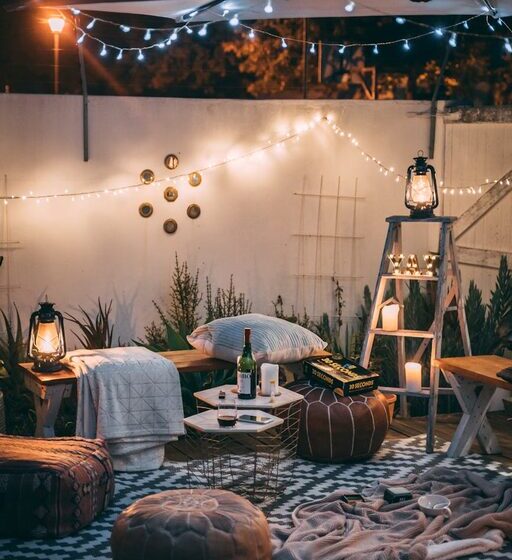 – Side Tables: Provide surfaces for drinks, snacks, and decor like lanterns or plants.